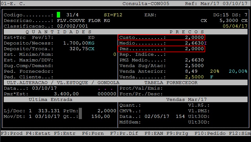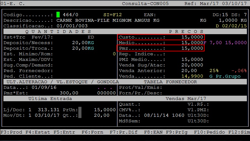 Deve-se consultar o Custo e o PMZ dos itens referentes ao Horti-Frutti e Açougue antes da entrada da Nota Fiscal. Acesse a localização citada acima para realizar a consulta.
