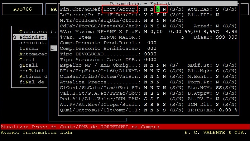 Acesse a localização citada acima para definir se o Horti-Frutti e o Açougue irão atualizar o Custo e o PMZ a partir da entrada de Notas Fiscais.