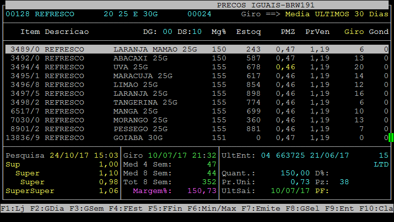 Agora no campo item pressione F2 para visualizar os itens que foram incluídos na pesquisa, note que não apareceram os itens com o mesmo preço, pois foi usado o parâmetro preços iguais setado com N.