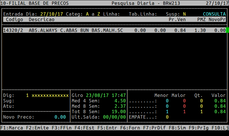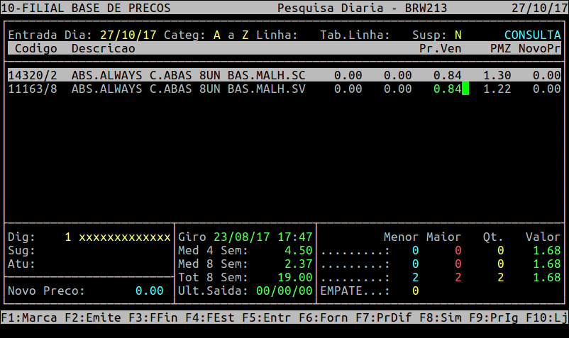 Digite o código do produto que deseja consultar e pressione F9 para realizar a consulta de preços iguais.