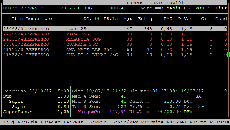 Agora no campo item pressione F2 para visualizar os itens que foram incluídos na pesquisa, note que apareceram os itens com o mesmo preço, pois foi usado o parâmetro preços iguais.