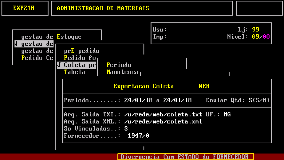 1- Identificando o Erro de Divergência de Estado do Fornecedor no Momento de Exportar a Coleta no Integral