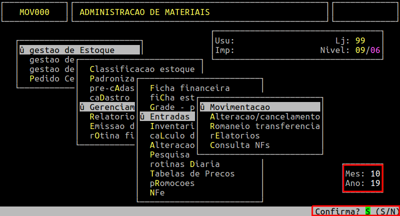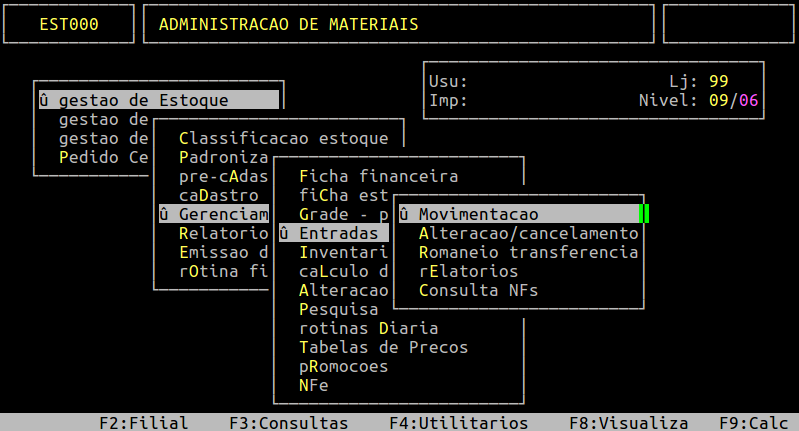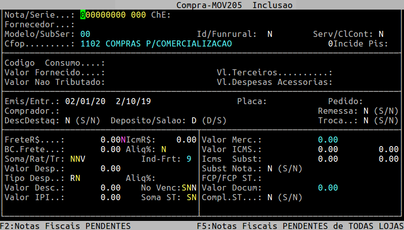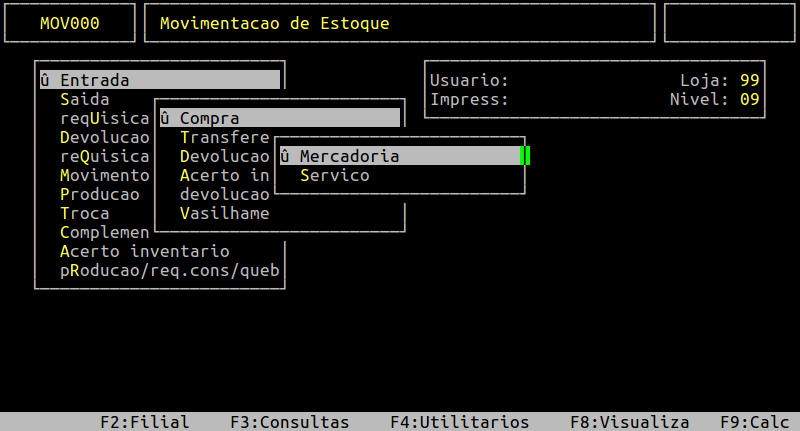 | Localização: | Administracao Materiais / Gestao de estoque / Gerenciamento Filial / Entradas e Saidas / Movimentacao / Entrada / Compra / Mercadoria |