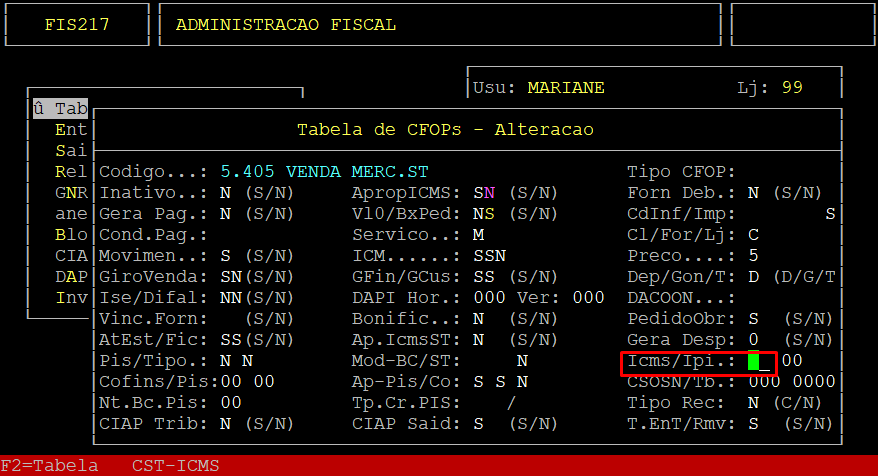 2- Verificando e Ajustando o Cadastro do CFOP Incorreto no Integral