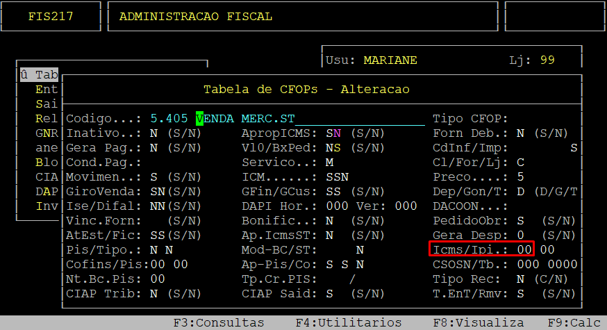 Localização: | Administracao Fiscal / Tabelas / Fiscais- Codigos / Alteracao |