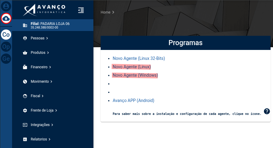 Downloads -> Novo Agente