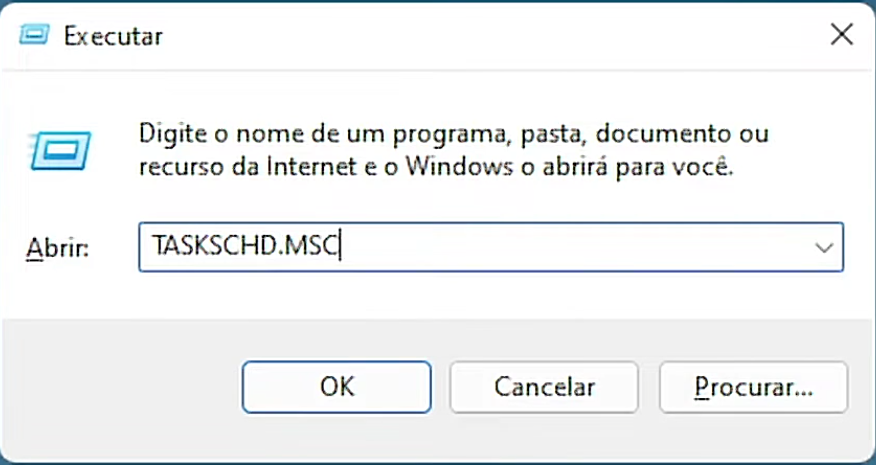 Pressione o atalho CTRL + R, e digite "taskschd.msc" e confirme com a tecla ENTER.