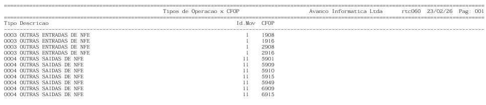 Quando o 'Tipo de Operação' e o 'movimento' estão cadastrados previamente, a rotina abaixo também pode ser consultada para conferencia dos CFOP´s.