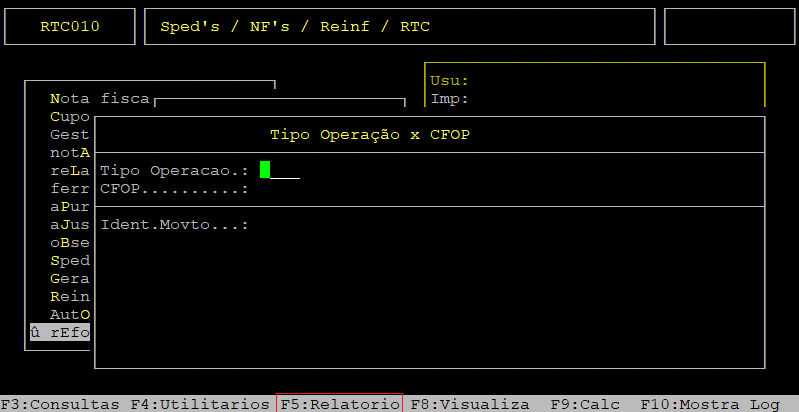 SPED EFD - NFe NFCe / reforma tributaria-RTC / Tipo Operação X CFOP |