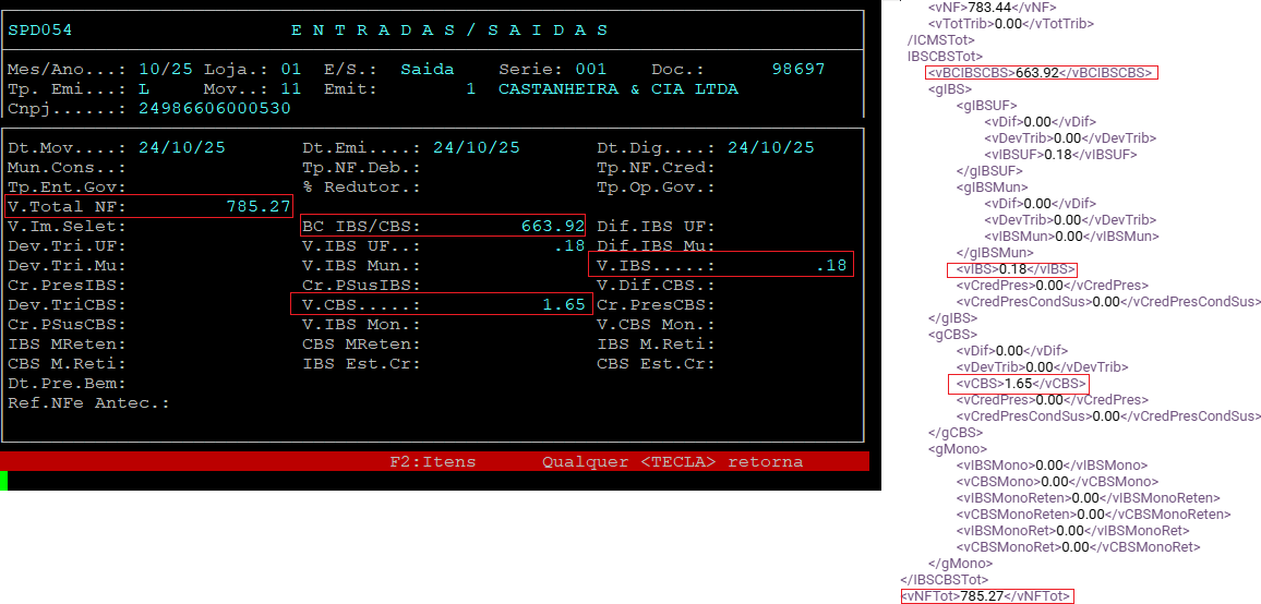 Quando o cursor estiver posicionado no campo 'Tp.Emi.:' pressione 'F3: RTC' para visualizar os dados da Reforma Tributária.