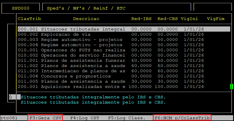 SPED EFD - NFe NFCe / reforma tributaria-RTC / CST/Classif. Tributária |