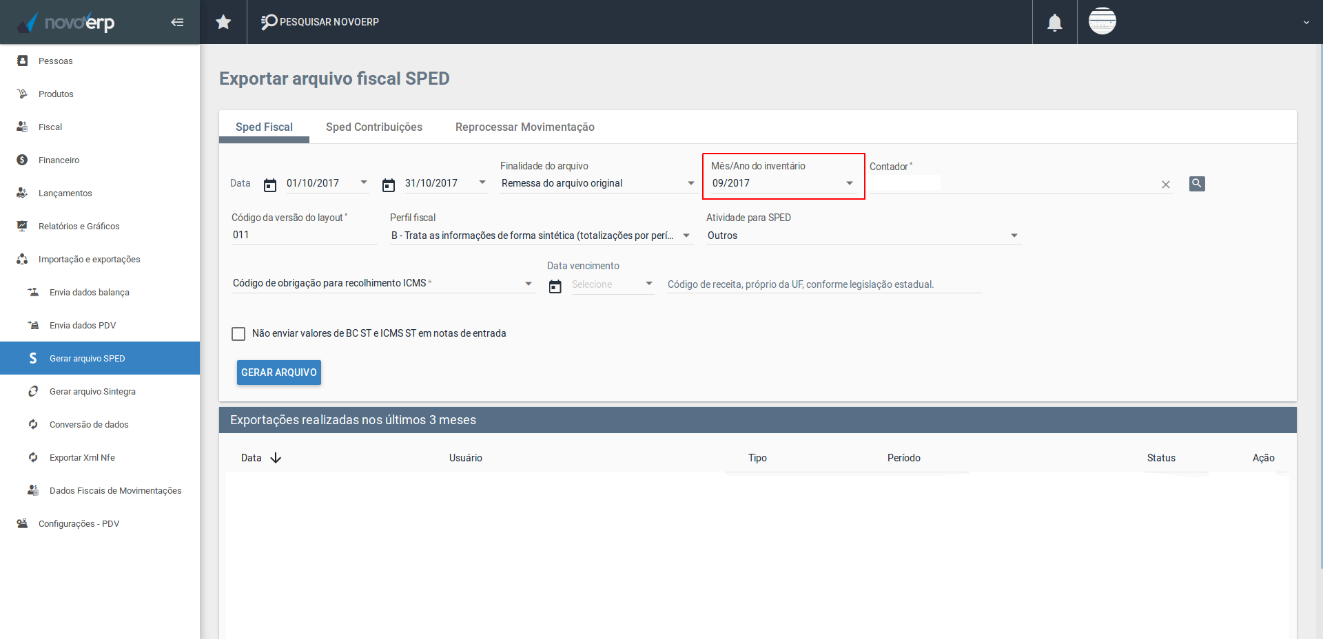 Como Gerar o Sped Fiscal com Inventário no Novo ERP